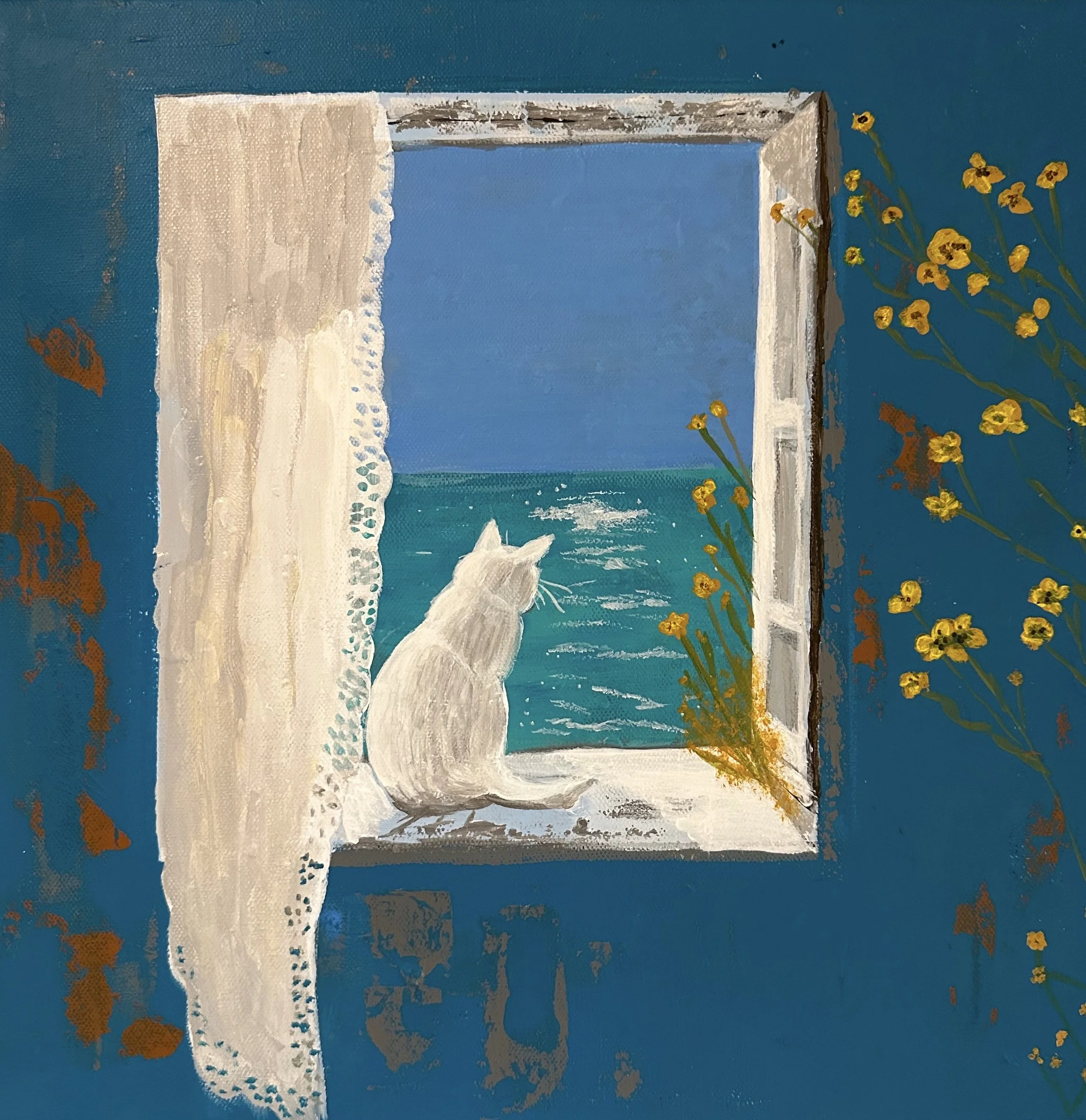 Becky’s artistic style reflects her warm and inviting personality, whimsical landscapes featuring sunsets, animals, and flowers, painted with bright, contrasting colors. She works in acrylics and pastels, often inspired by the natural world.