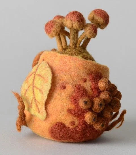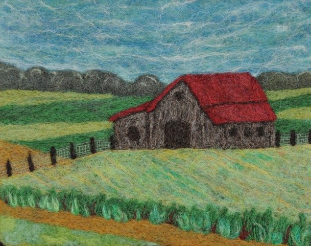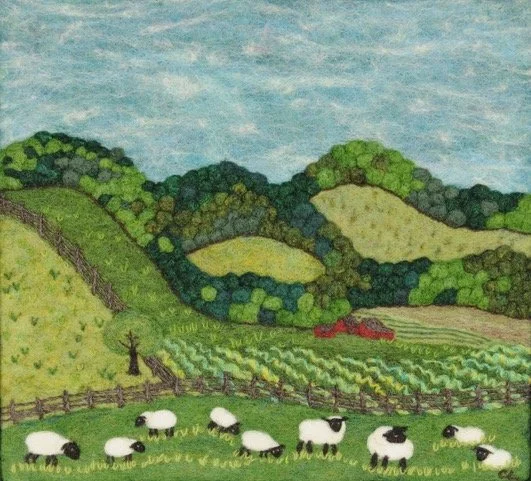 Chris still lives on her farm with her husband David and their sheep. Chris’s felt art is cherished by numerous homes across the country. She has exhibited at many venues, including the Ohio Craft Museum, Franklin Park Conservatory, Zanesville Museum of Art, Bryn Du Art Show, Licking County Arts, Denison Art Space, The Dawes Arboretum, Wayne Center for the Arts, The Dairy Barn, The Works, Ohio State Fair Fine Arts Exhibition, and even has a photograph of one of her 3-D felt pieces in the book World Wide Colours of Felt.
